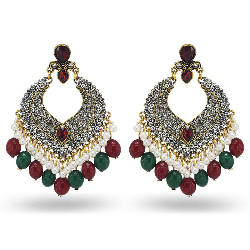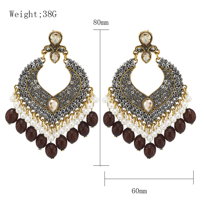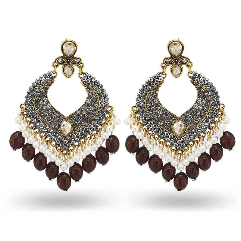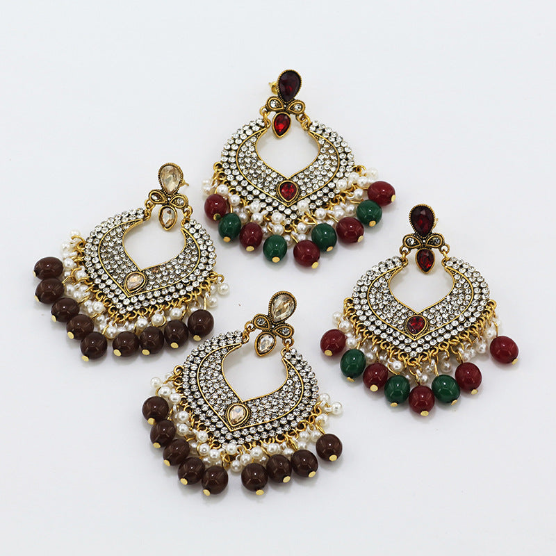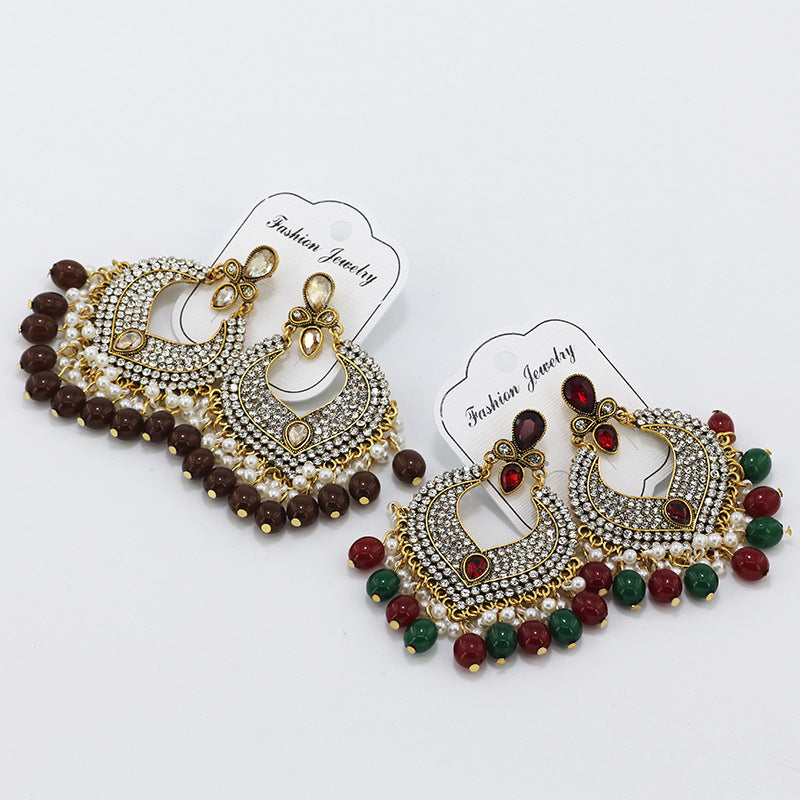 Indian Earrings Traditional Round Beaded Earrings Chandali for Wowen-Brown