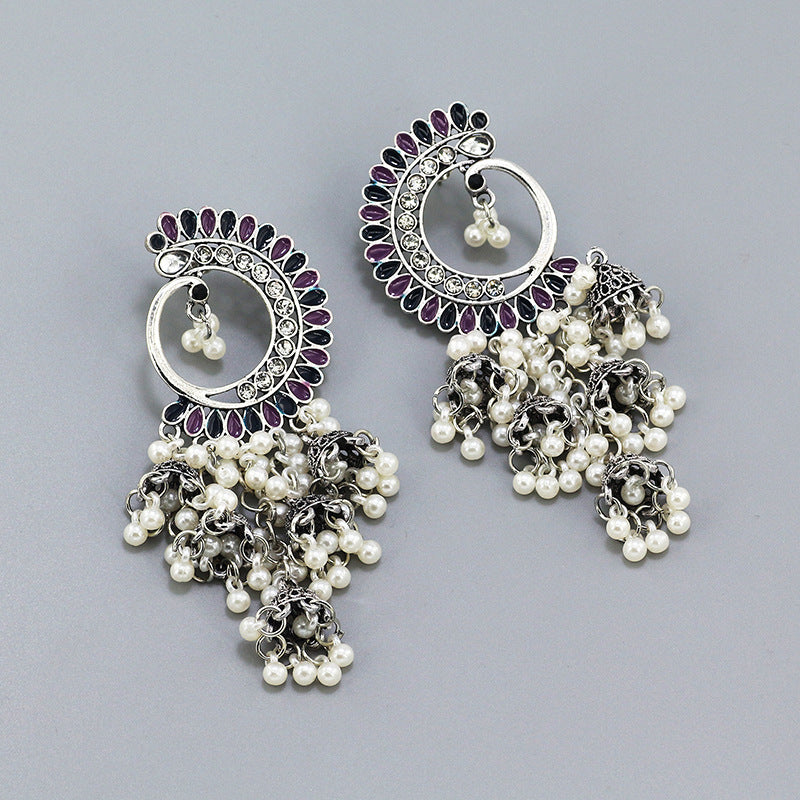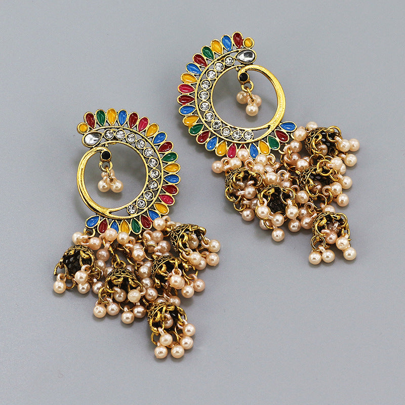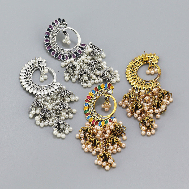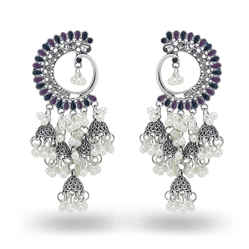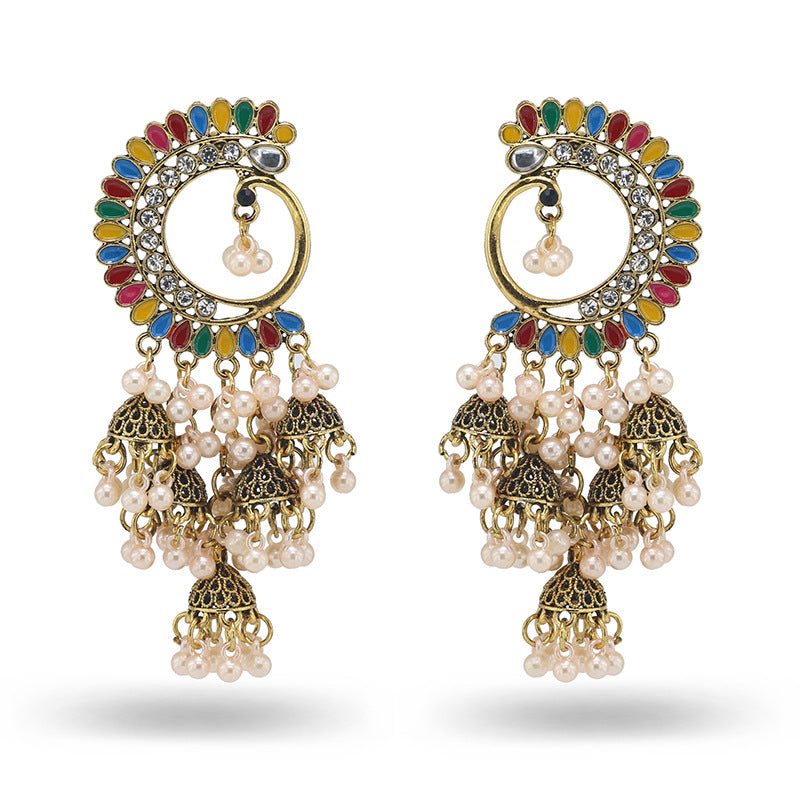 Indian Earrings Traditional Ethnic Bollywood Half Moon Phoenix Pearl Jhumka Jhumki Jumka Earrings for Wowen