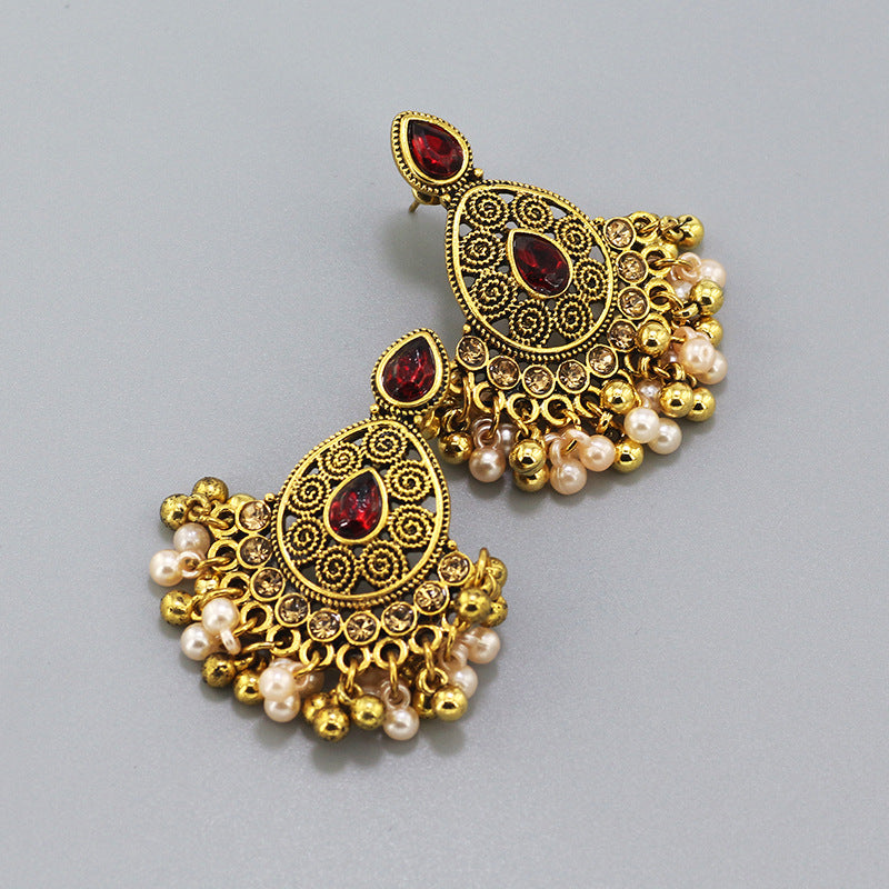 Indian Earrings Traditional Imitation Agate Beaded Small Stud Earrings
