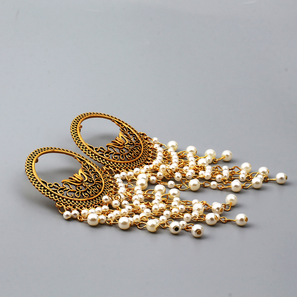 Indian Earrings Bohemian Pearl Tassel Earrings for Wowen-Gold/Silver