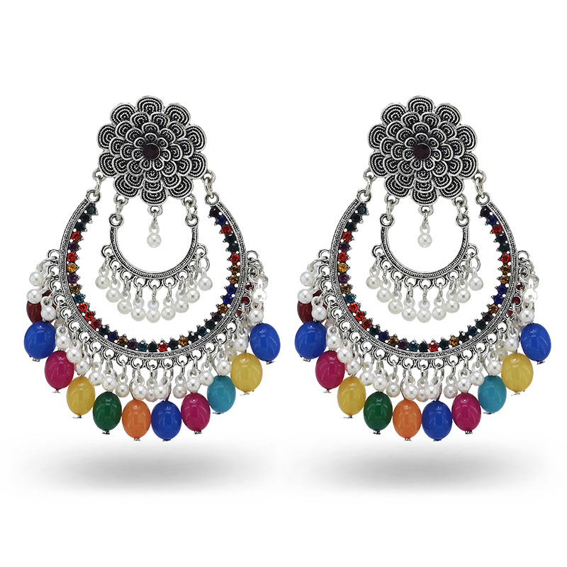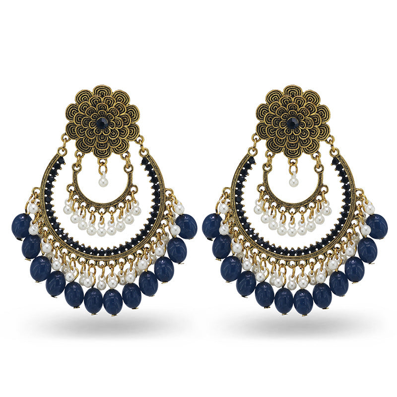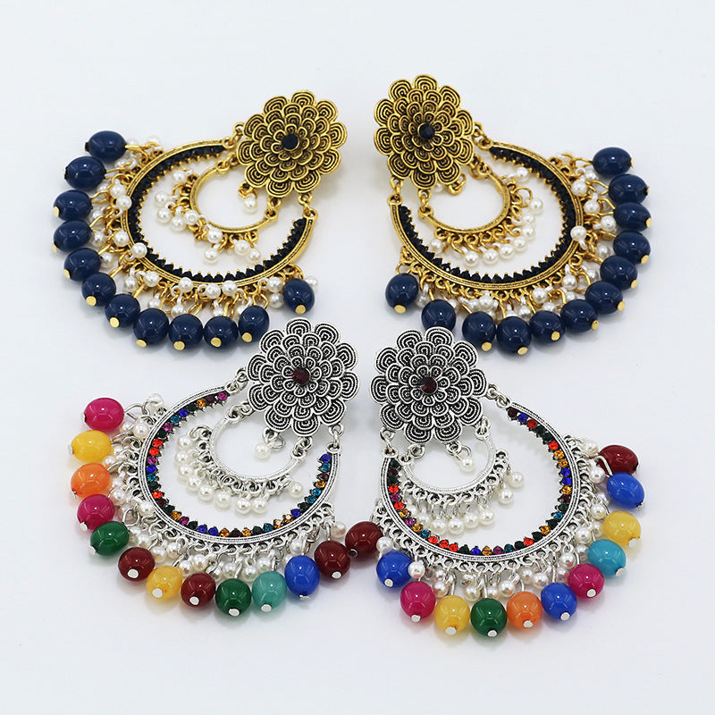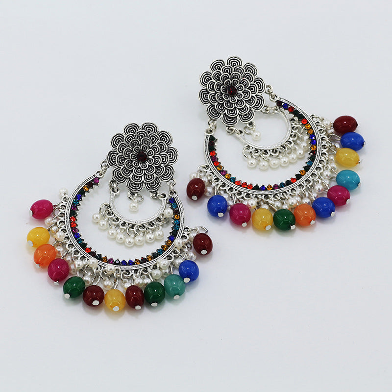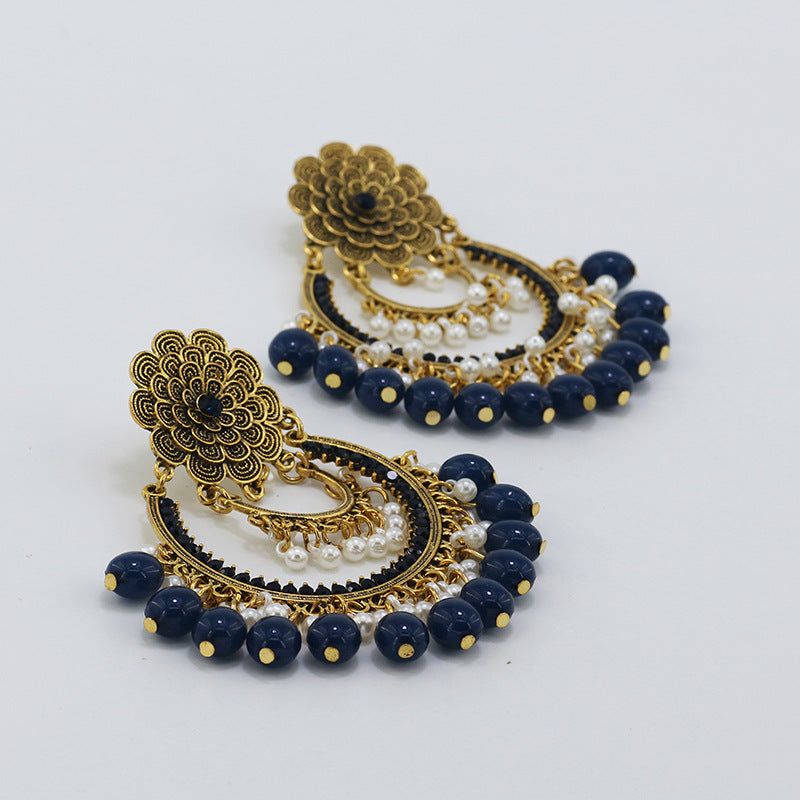 Indian Earrings Traditional Round Imitation Agate Beaded Earrings Chandali for Wowen-Brown
