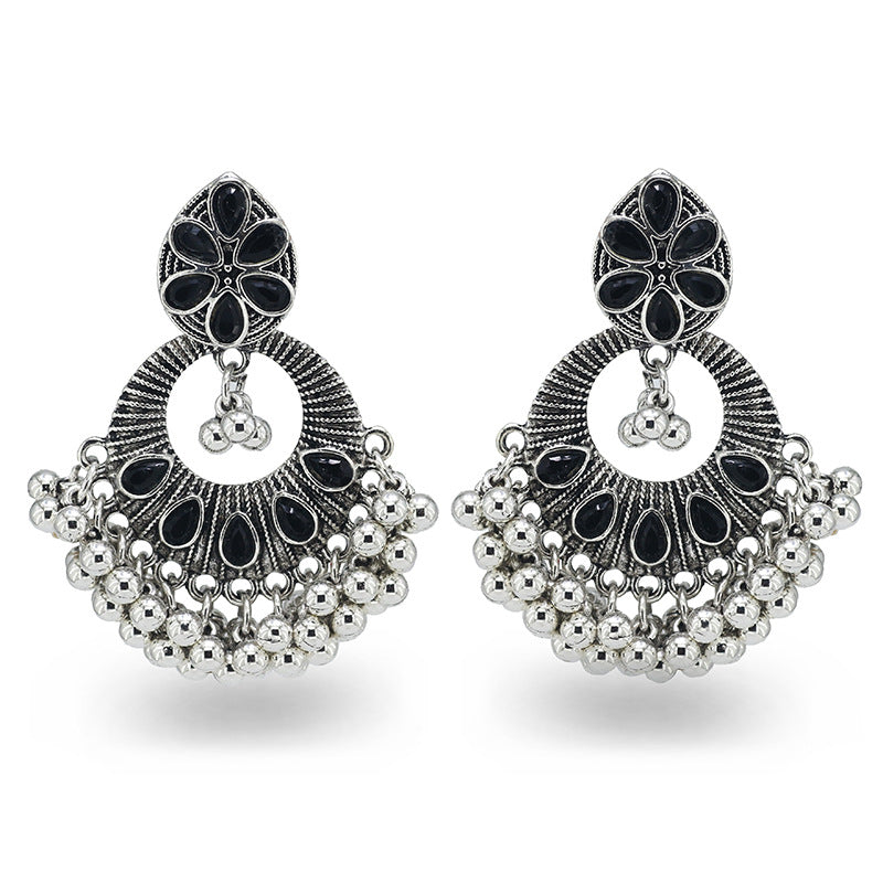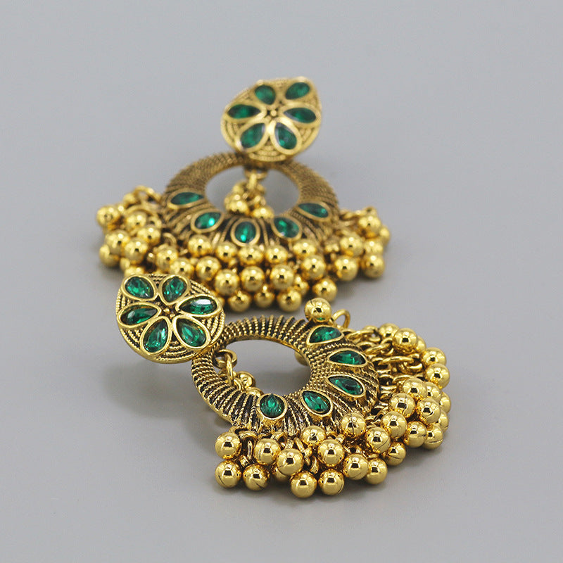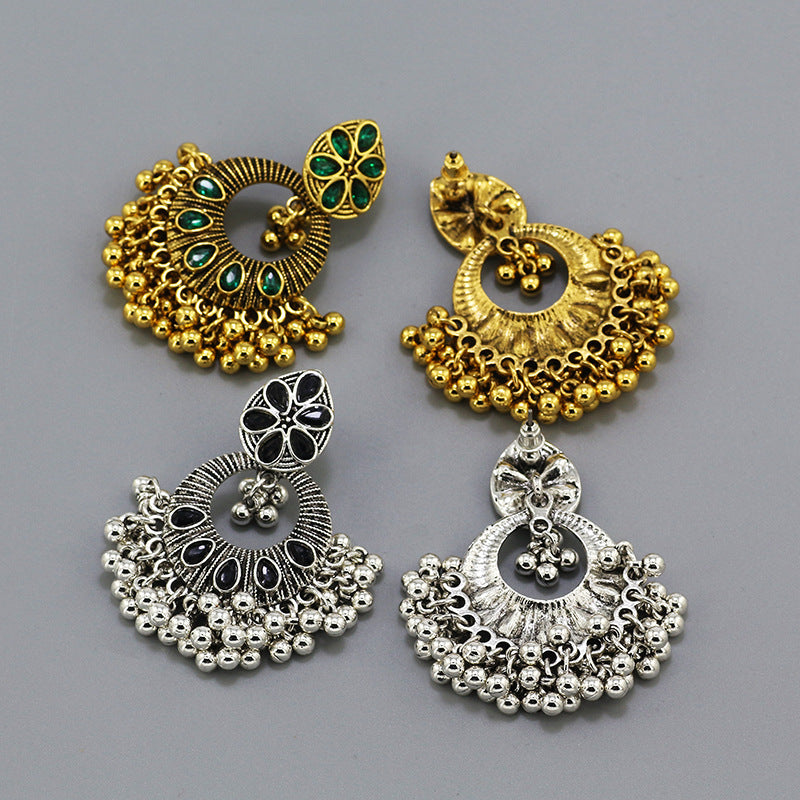 Indian Earrings Gold Round Beaded Earrings for Wowen-Gold/Silver